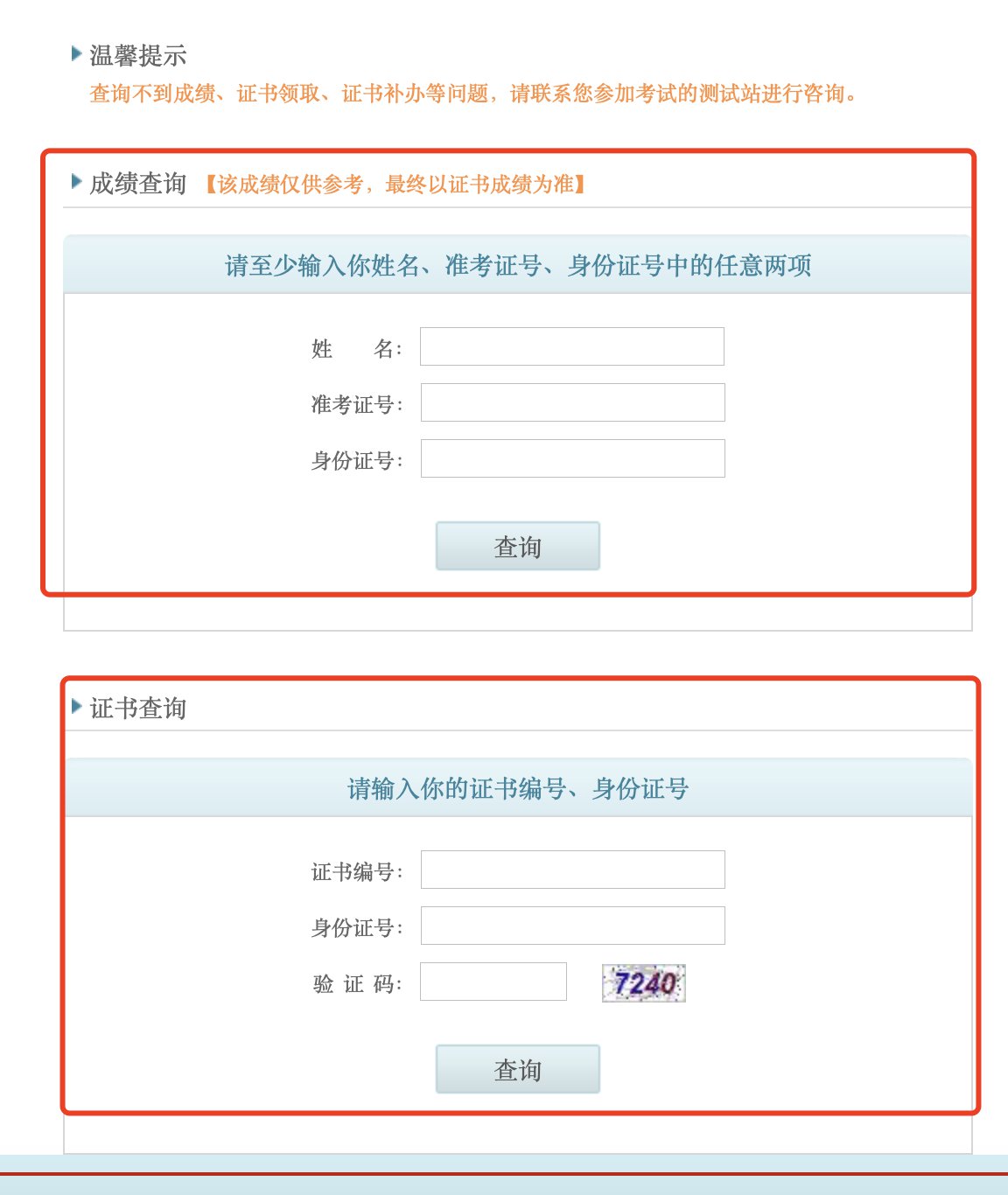 進(jìn)入查詢?nèi)肟,輸入自己的?zhǔn)考證號(hào)和個(gè)人信息,查詢普通話考試成績(jī),輸入自己的證書(shū)編號(hào)和身份證號(hào),還可以查詢自己的普通話證書(shū)