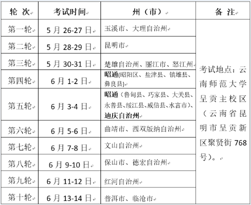 考試時(shí)間:2020年5月26日至6月14日(共20天),如遇天氣等原因考試無法正常進(jìn)行時(shí),考試時(shí)間延后。