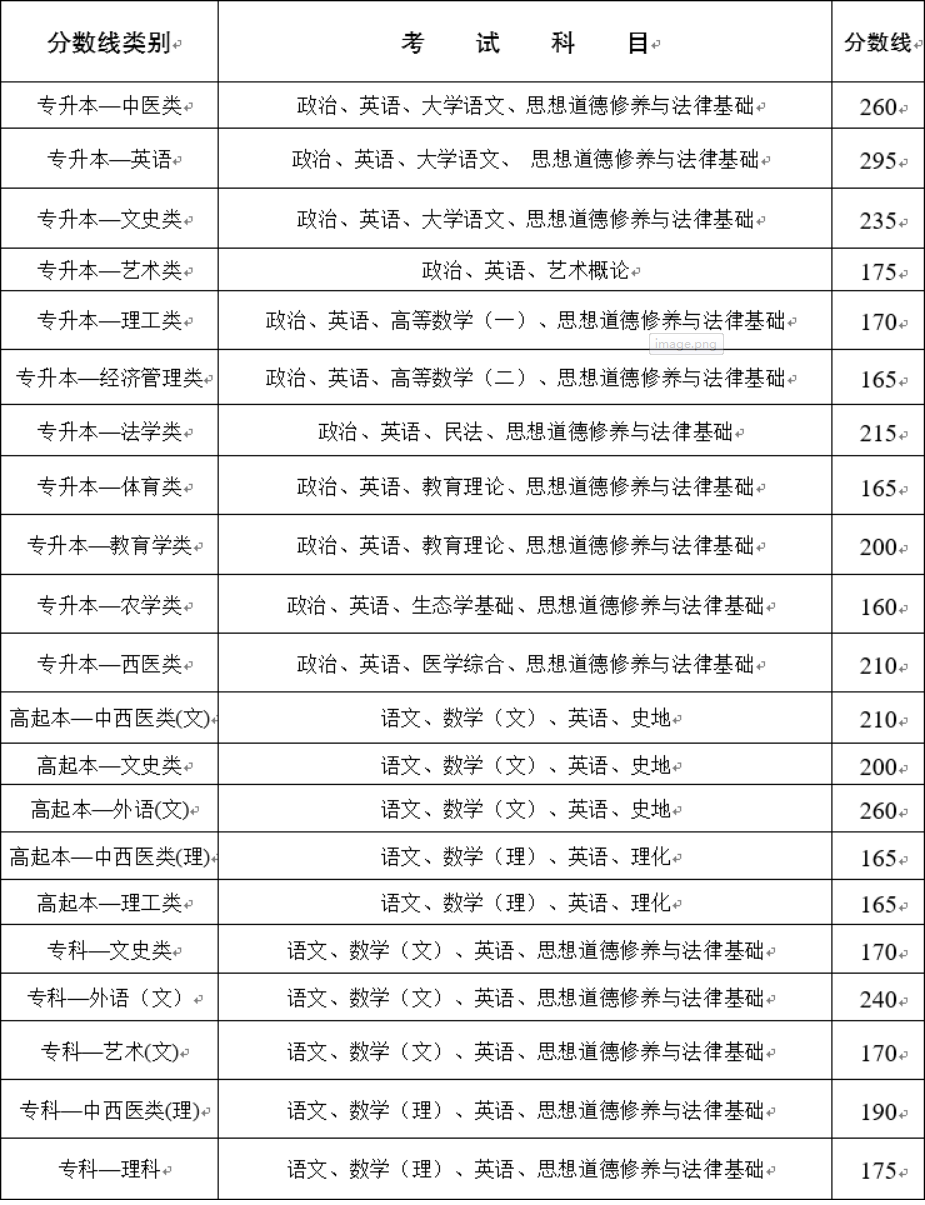 二、2020年云南省成人高校招生最低錄取控制分?jǐn)?shù)線