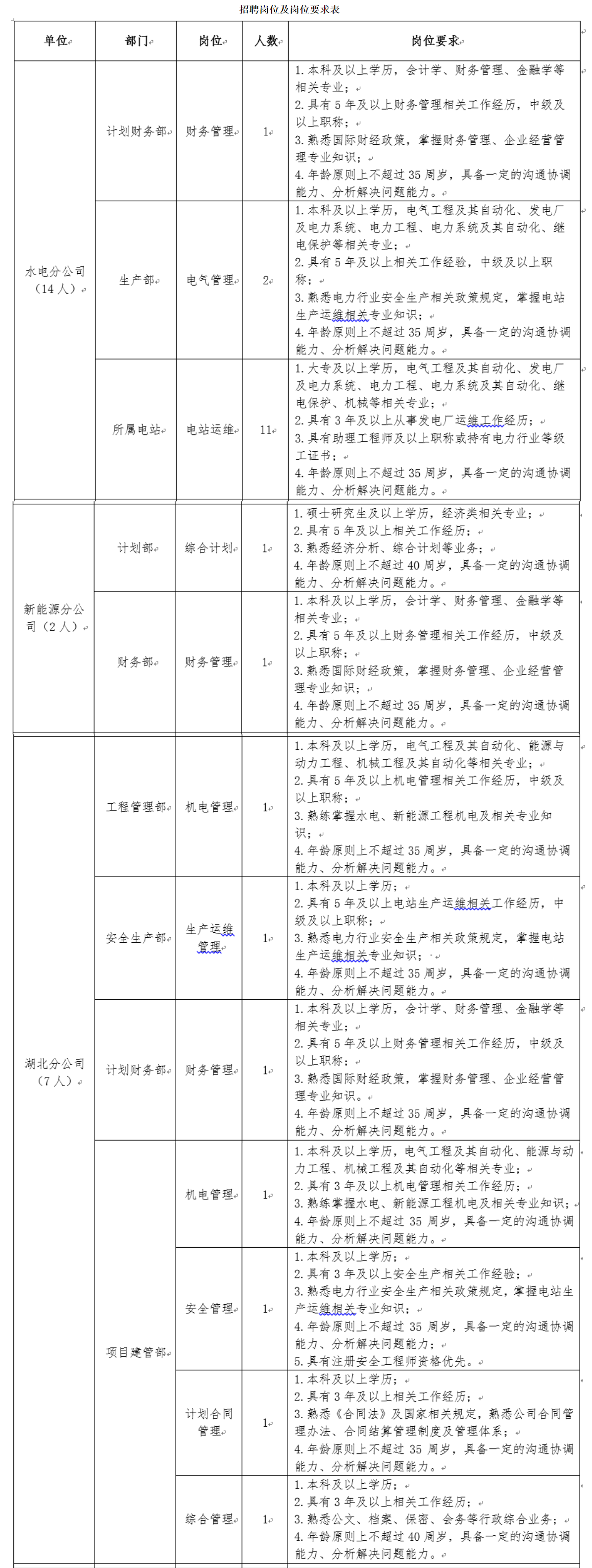 根據(jù)公司發(fā)展需要,現(xiàn)公開(kāi)招聘部分財(cái)務(wù)管理、綜合管理、工程建設(shè)、生產(chǎn)運(yùn)維等崗位人員。有關(guān)事項(xiàng)公告如下:
