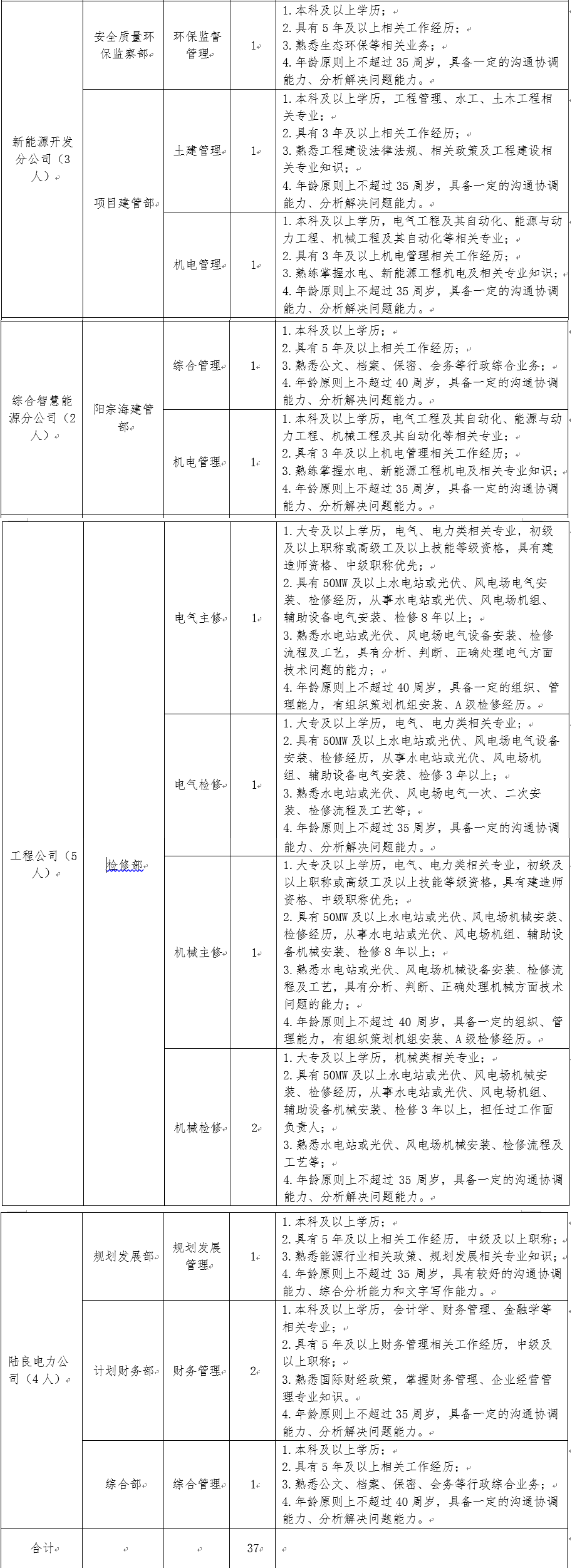 面向國(guó)家電投集團(tuán)系統(tǒng)內(nèi)、外招聘相關(guān)崗位人員37人。