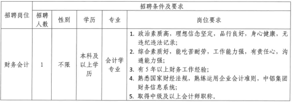 根據(jù)工作需要,云鋁匯鑫公開招聘財(cái)務(wù)會(huì)計(jì)人員,現(xiàn)將有關(guān)事宜公告如下: