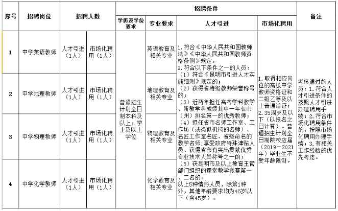 昆明滇池中學2021年人才引進、招聘市場化聘用教師公告