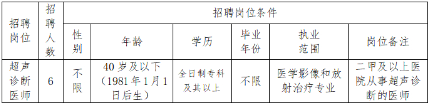 為使醫(yī)院人力資源配置適應(yīng)醫(yī)院業(yè)務(wù)發(fā)展需求,保障醫(yī)療安全,提高服務(wù)質(zhì)量,滿足廣大人民群眾日益增長的醫(yī)療衛(wèi)生需求,我院決定招聘超聲醫(yī)學(xué)科編制外工作人員,具體事項如下: