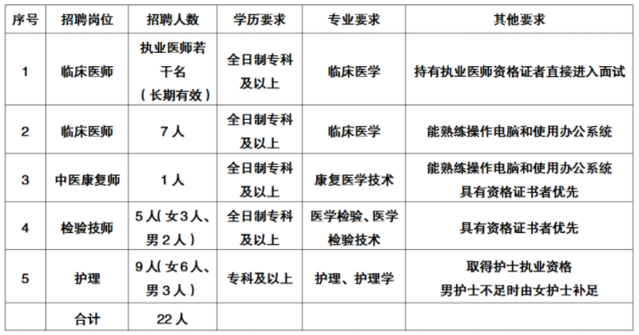 因工作需求,經(jīng)院長(zhǎng)辦公會(huì)和黨總支委員會(huì)會(huì)議研究決定,鶴慶縣人民醫(yī)院現(xiàn)面向社會(huì)公開(kāi)招聘編制外專(zhuān)業(yè)技術(shù)人員22人,F(xiàn)將招聘事宜通告如下:
