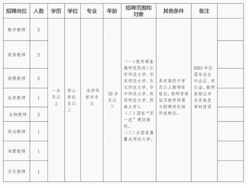 云南省保山第一中學(xué)2023年2月公開招聘教師8個崗位共12人,具體崗位如下: