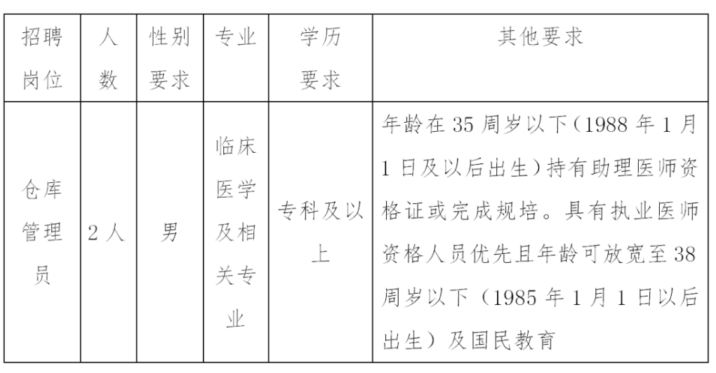 5.具備扎實的醫(yī)學專業(yè)理論知識和實踐操作技能,熟練操作規(guī)程,工作需要強體力勞動(隨時搬運倉庫內(nèi)重型物資)。