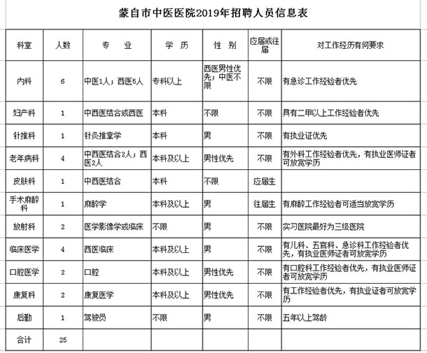 蒙自市中醫(yī)醫(yī)院2019年招聘信息