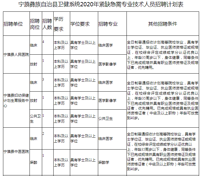 寧蒗彝族自治縣衛(wèi)生健康局2020年公開招聘編制內(nèi)緊缺急需專業(yè)技術(shù)人員的公告
