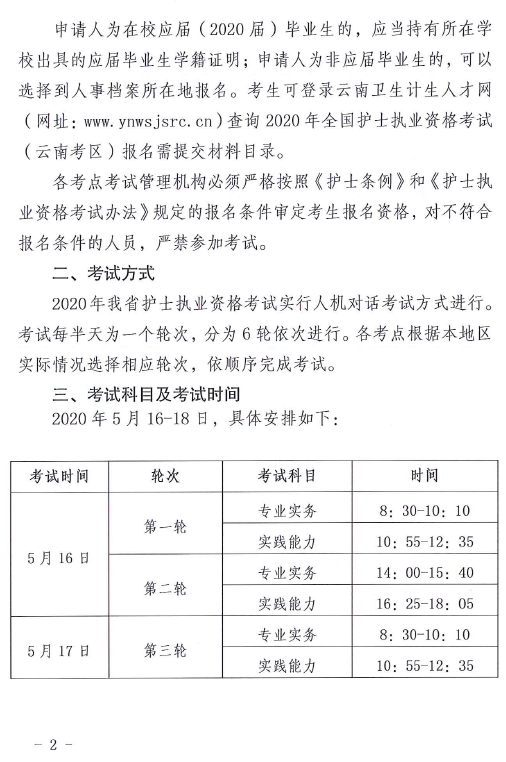 云南省關(guān)于2020年全省護士執(zhí)業(yè)資格考試有關(guān)問題的通知